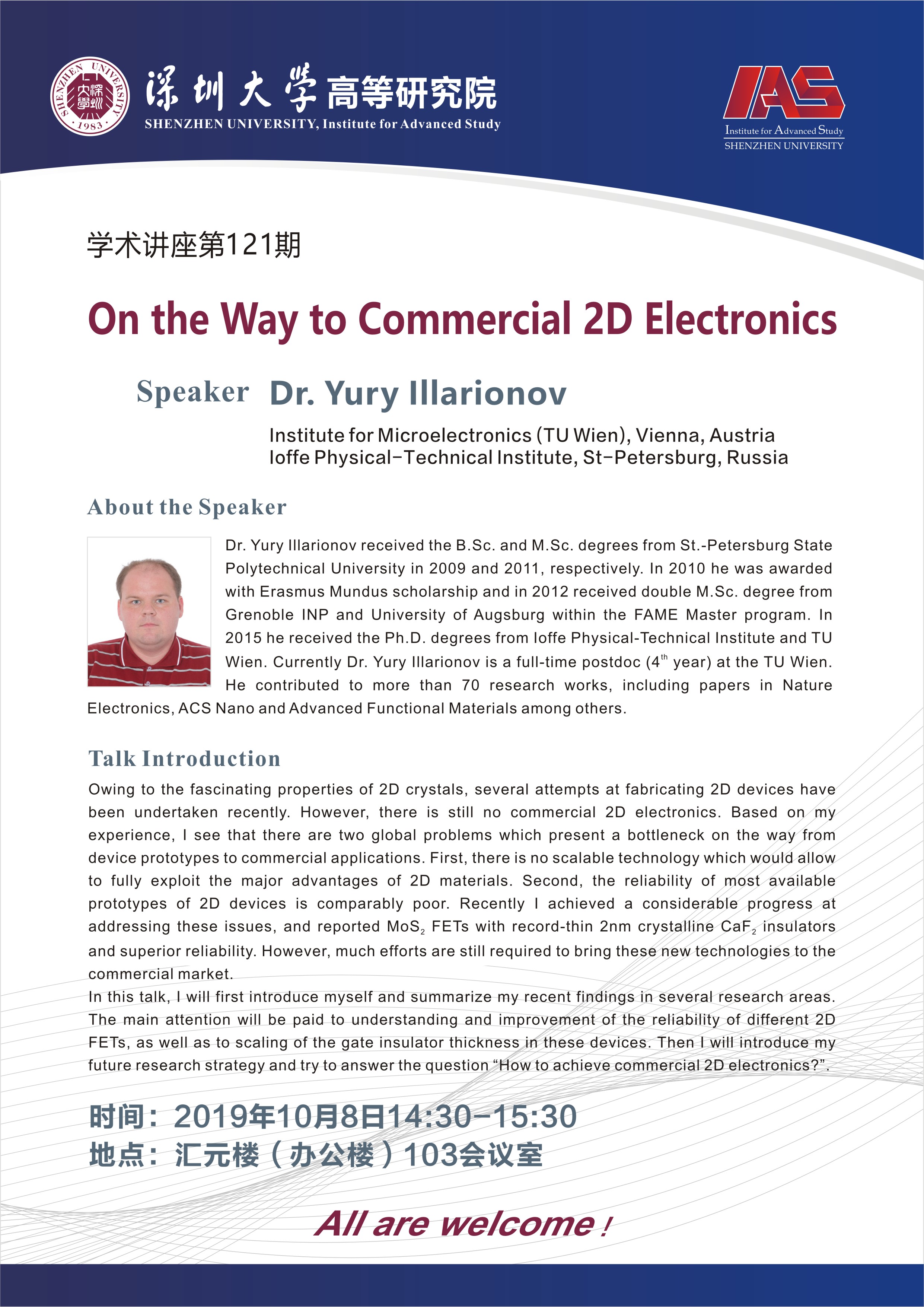 In this talk, I will first introduce myself and summarize my recent findings in several research areas. The main attention will be paid to understanding and improvement of the reliability of different 2D FETs, as well as to scaling of the gate insulator thickness in these devices. Then I will introduce my future research strategy and try to answer the question “How to achieve commercial 2D electronics?”.