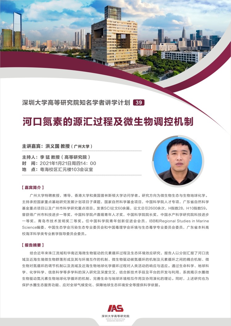 报告题目: 河口氮素的源汇过程及微生物调控机制