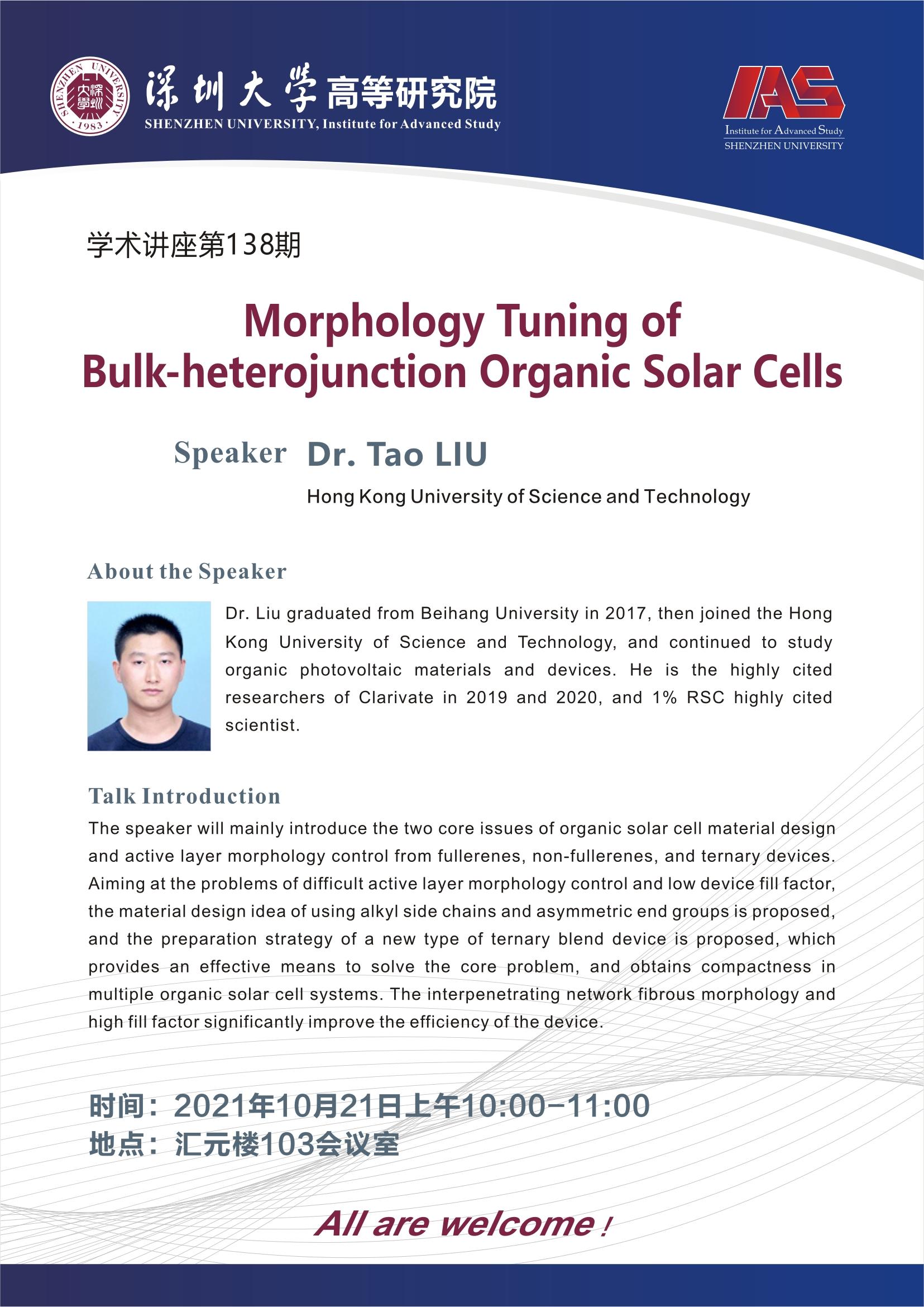 The speaker will mainly introduce the two core issues of organic solar cell material design and active layer morphology control from fullerenes, non-fullerenes, and ternary devices. Aiming at the problems of difficult active layer morphology control and low device fill factor, the material design idea of using alkyl side chains and asymmetric end groups is proposed, and the preparation strategy of a new type of ternary blend device is proposed, which provides an effective means to solve the core problem, and obtains compactness in multiple organic solar cell systems. The interpenetrating network fibrous morphology and high fill factor significantly improve the efficiency of the device.