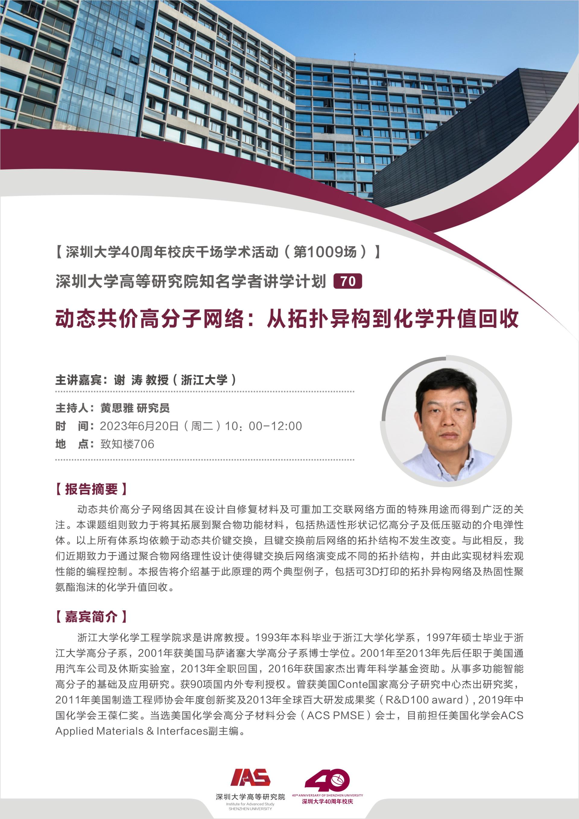 报告主题:动态共价高分子网络:从拓扑异构到化学升值回收Dynamic covalent polymer networks: from topological transformations to chemical recycling