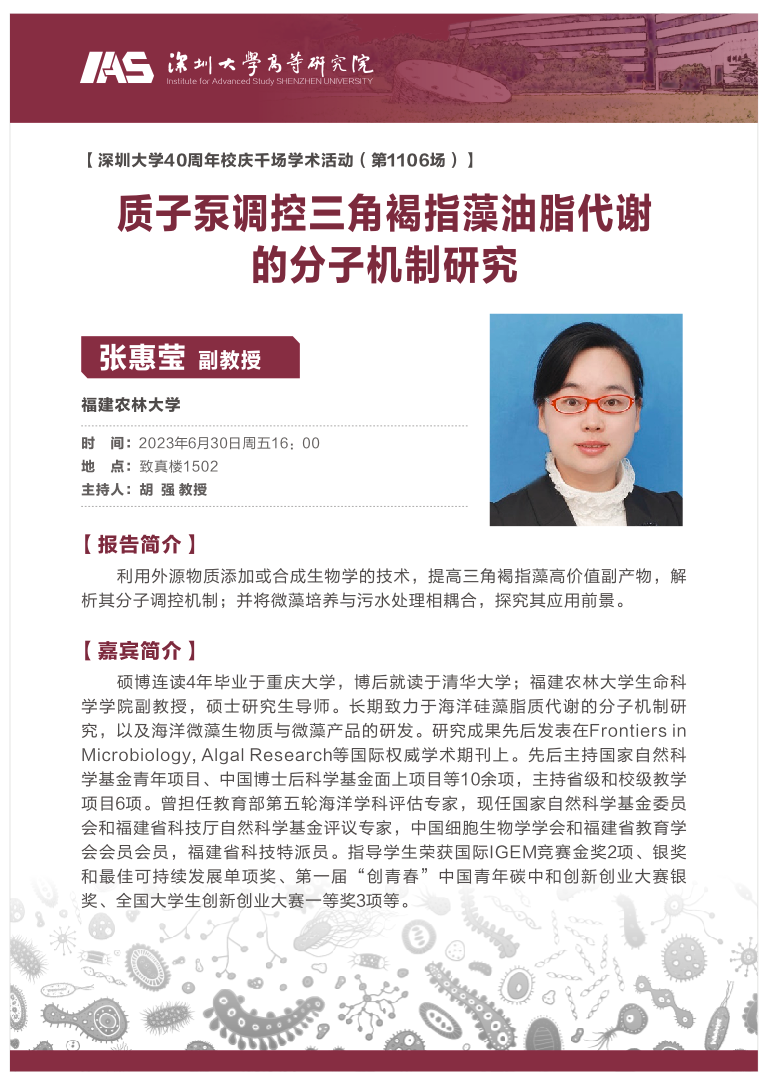 报告题目:质子泵调控三角褐指藻油脂代谢的分子机制研究