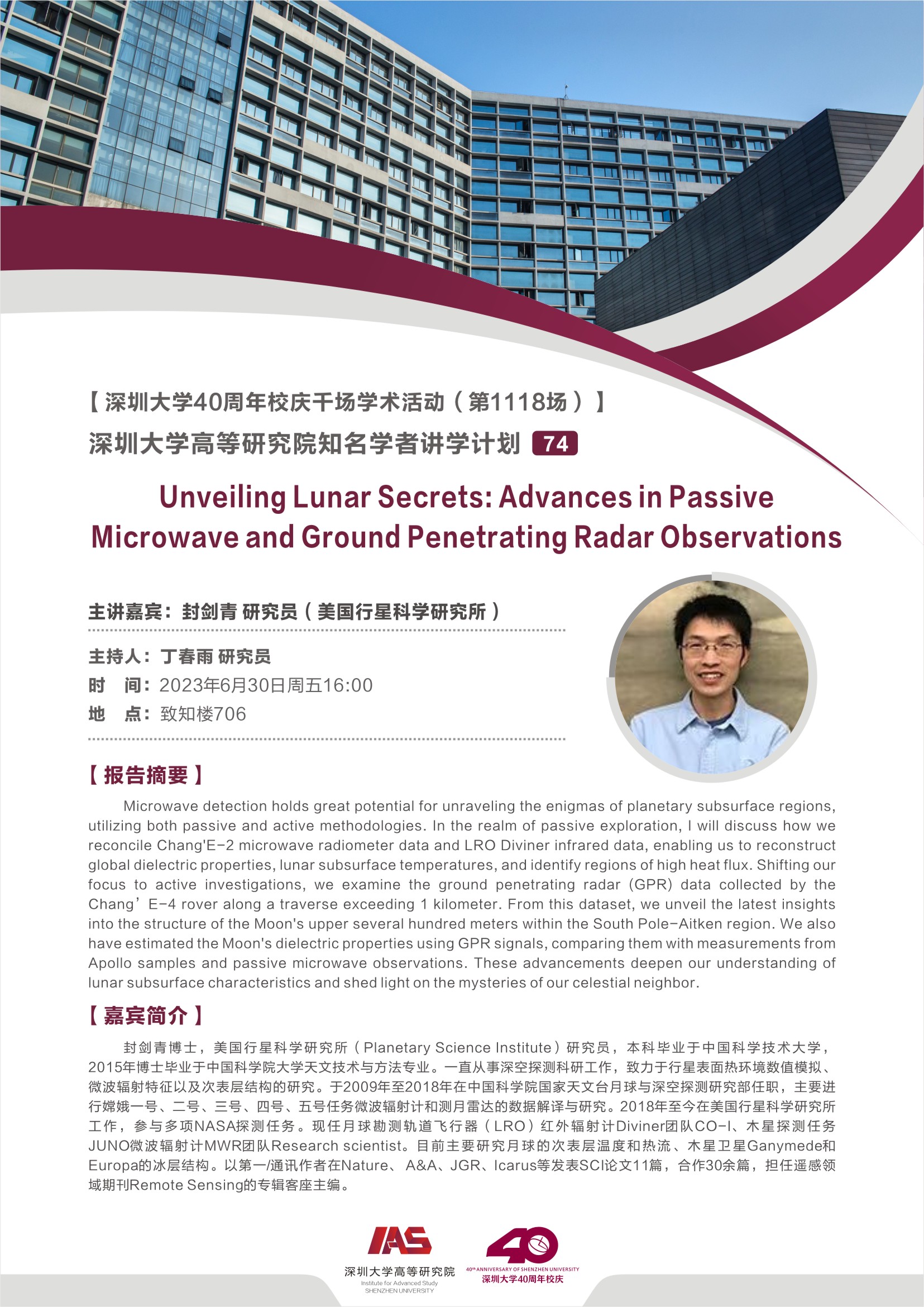 报告主题:Unveiling Lunar Secrets: Advances in Passive Microwave and Ground Penetrating Radar Observations