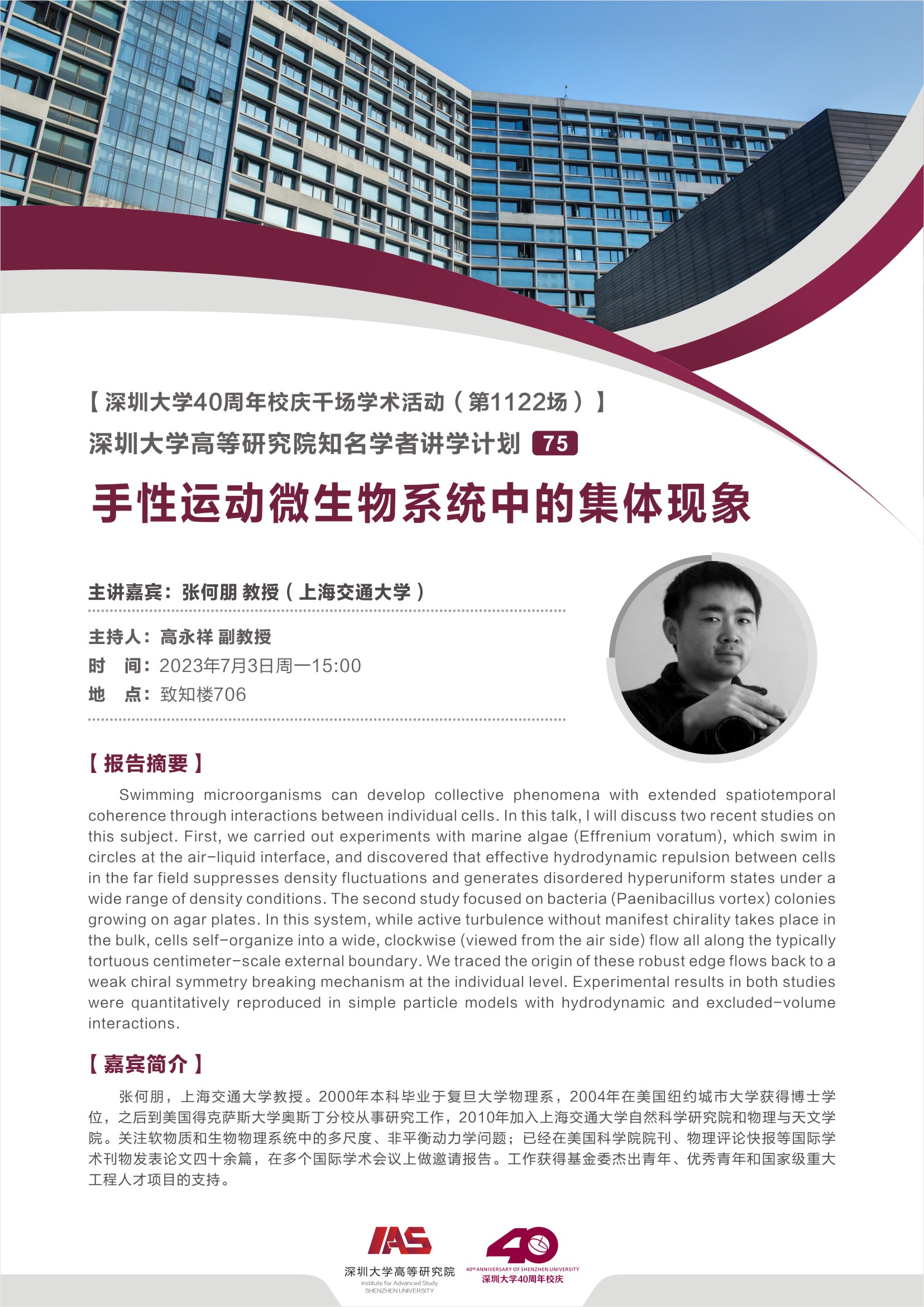 张何朋,上海交通大学教授。2000年本科毕业于复旦大学物理系,2004年在美国纽约城市大学获得博士学,之后到美国得克萨斯大学奥斯丁分校从事研究工作,2010年加入上海交通大学自然科学研究院和物理与天文学院。关注软物质和生物物理系统中的多尺度、非平衡动力学问题;已经美国科学院院刊、物理评论快报等国际学术刊物发表论文四十余篇,在多个国际学术会议上做邀请报告。工作获得基金委杰出青年、优秀青年和国家级重大工程人才项目的支持。