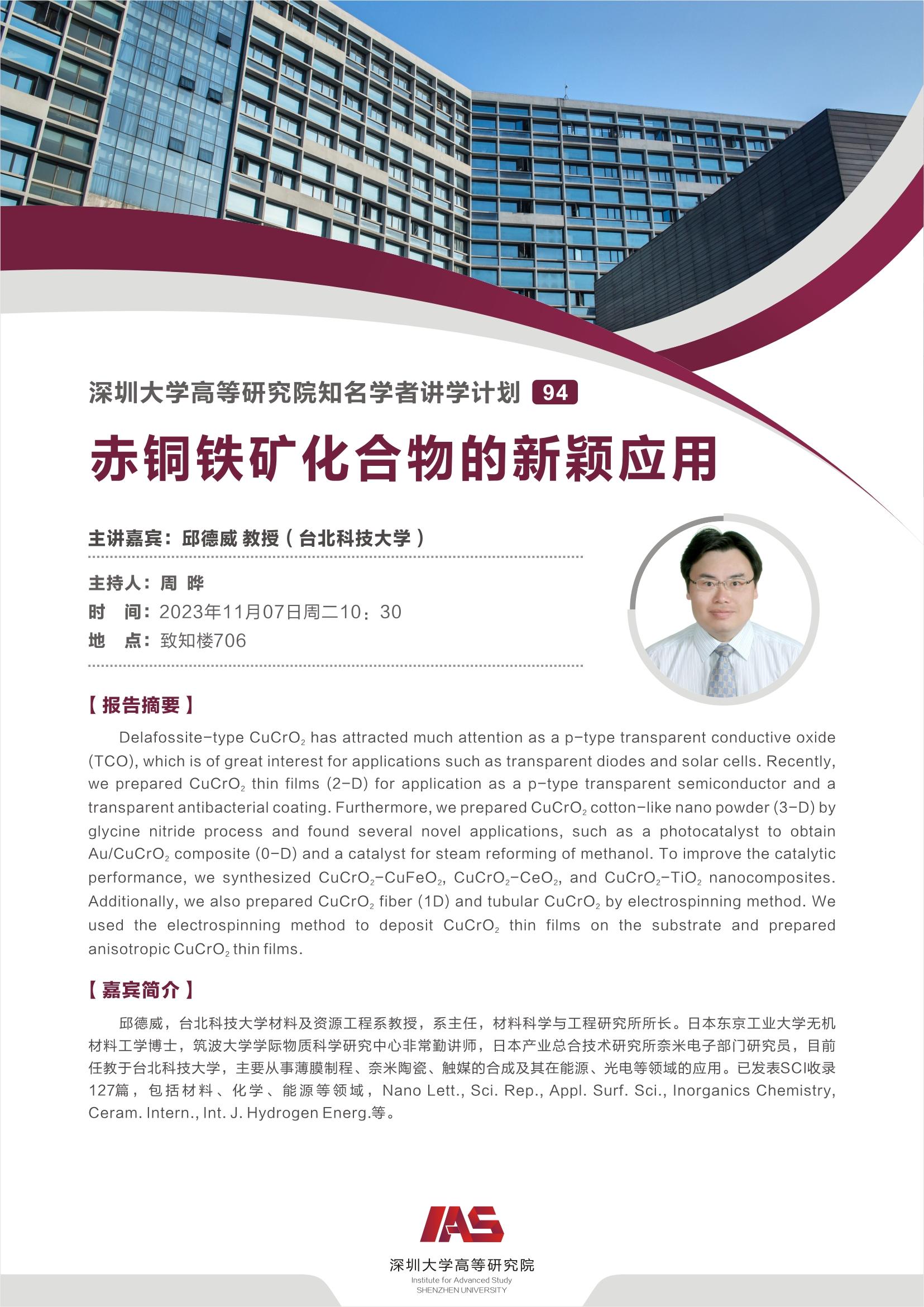 邱德威,台北科技大学材料及资源工程系教授,系主任,材料科学与工程研究所所长。日本东京工业大学无机材料工学博士,筑波大学学际物质科学研究中心非常勤讲师,日本产业总合技术研究所奈米电子部门研究员,目前任教于台北科技大学,主要从事薄膜制程、奈米陶瓷、触媒的合成及其在能源、光电等领域的应用。已发表SCI收录127篇,包括材料、化学、能源等领域,Nano Lett., Sci. Rep., Appl. Surf. Sci., Inorganics Chemistry, Ceram. Intern., Int. J. Hydrogen Energ.等。