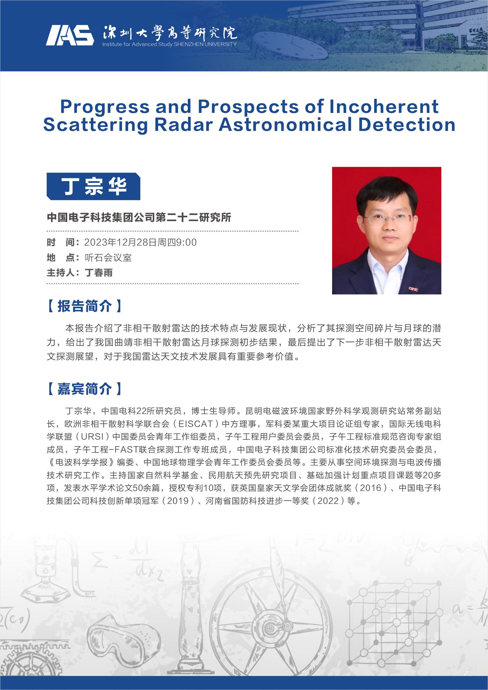报告主题:Progress and Prospects of Incoherent Scattering Radar Astronomical Detection