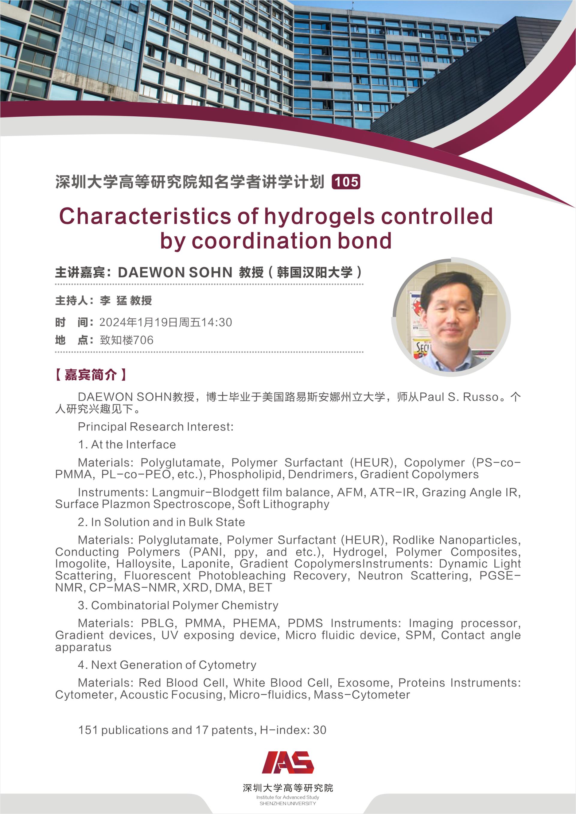报告主题:Characteristics of hydrogels controlled by coordination bond