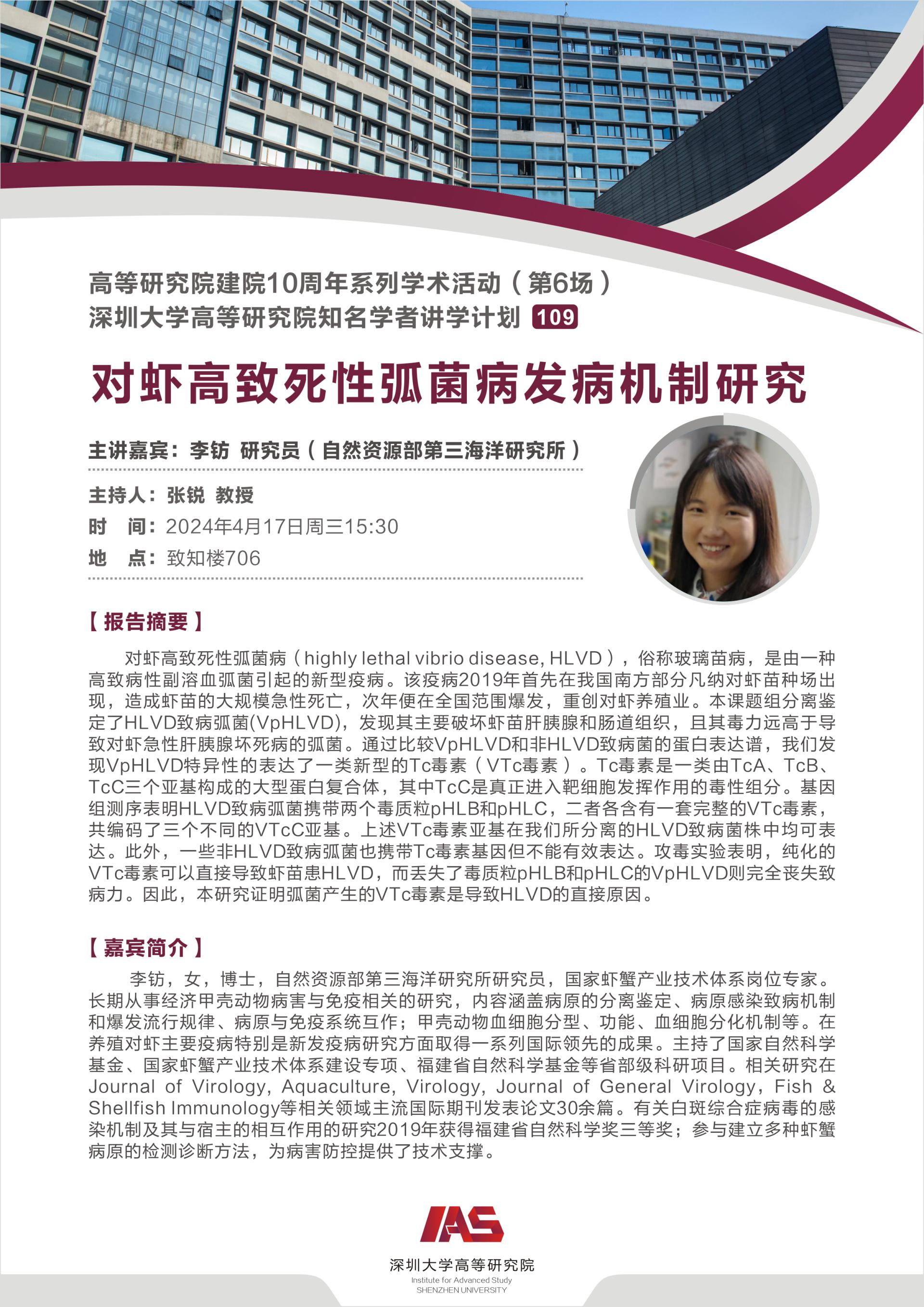 报告主题:对虾高致死性弧菌病发病机制研究