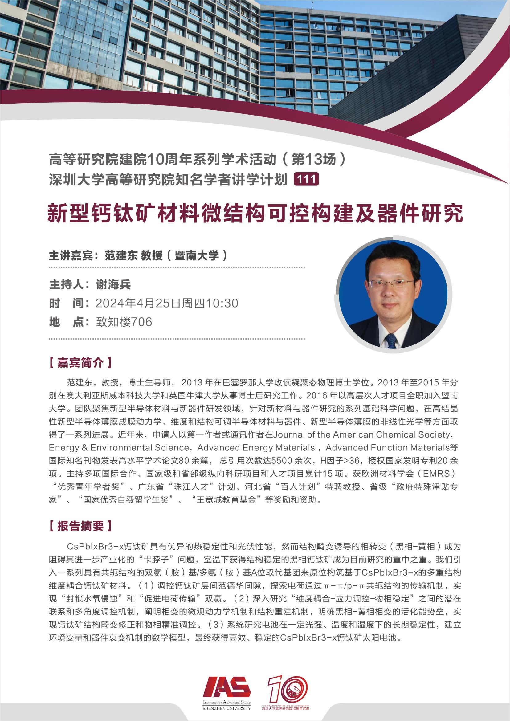报告主题:新型钙钛矿材料微结构可控构建及器件研究