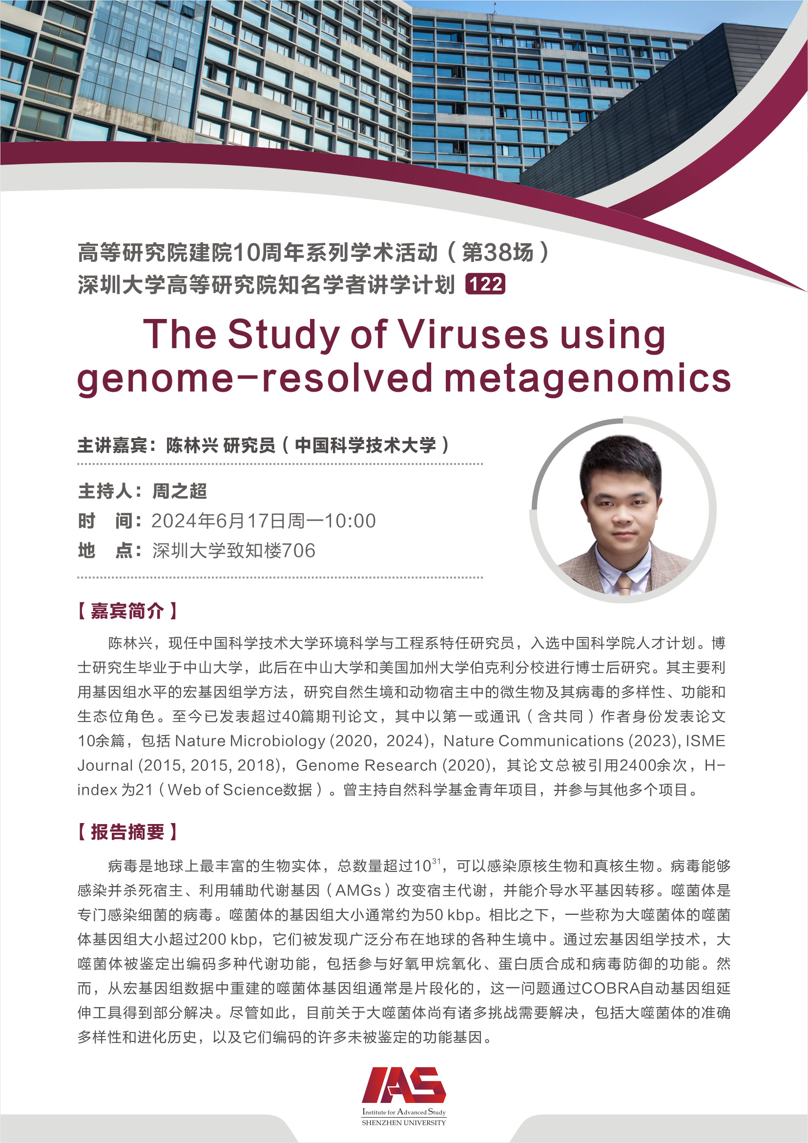 报告主题:The Study of Viruses using genome-resolved metagenomics