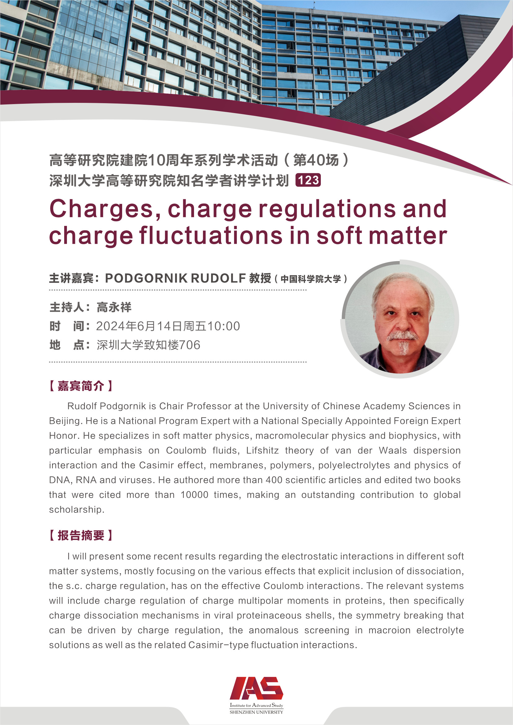 报告主题:Charges, charge regulations and charge fluctuations in soft matter