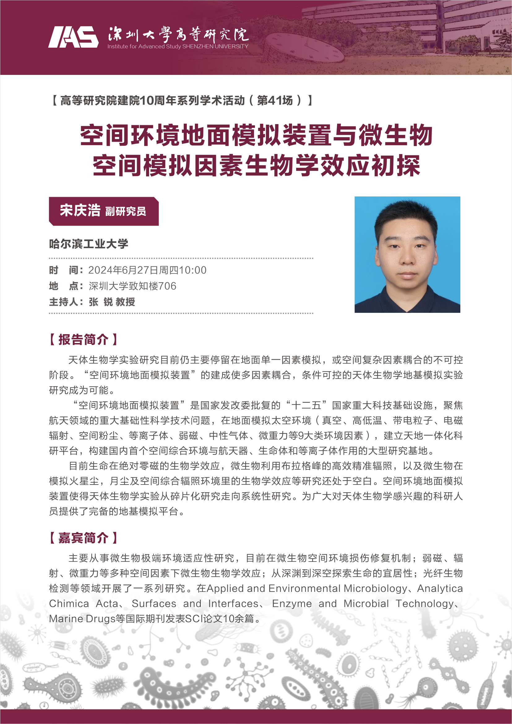 主讲人:宋庆浩副研究员(哈尔滨工业大学)