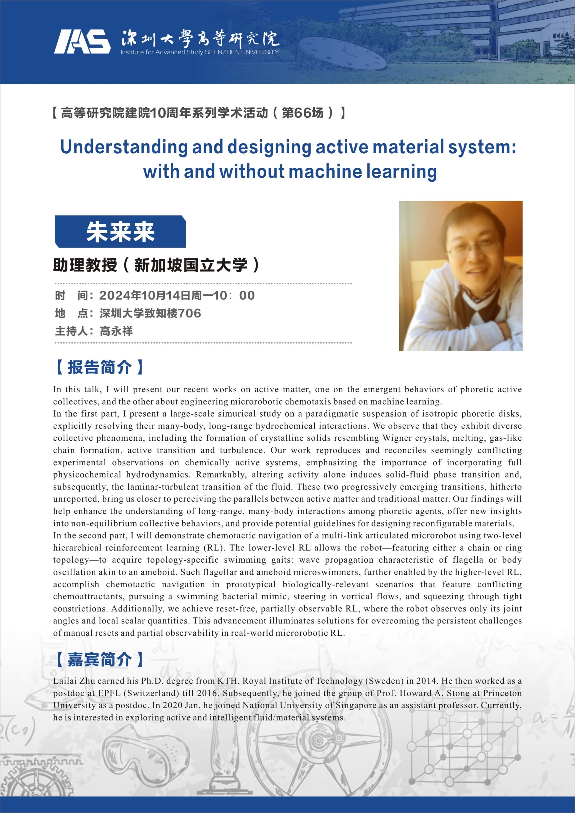 Lailai Zhu earned his Ph.D. degree from KTH, Royal Institute of Technology (Sweden) in 2014. He then worked as a postdoc at EPFL (Switzerland) till 2016. Subsequently, he joined the group of Prof. Howard A. Stone at Princeton University as a postdoc. In 2020 Jan, he joined National University of Singapore as an assistant professor. Currently, he is interested in exploring active and intelligent fluid/material systems.