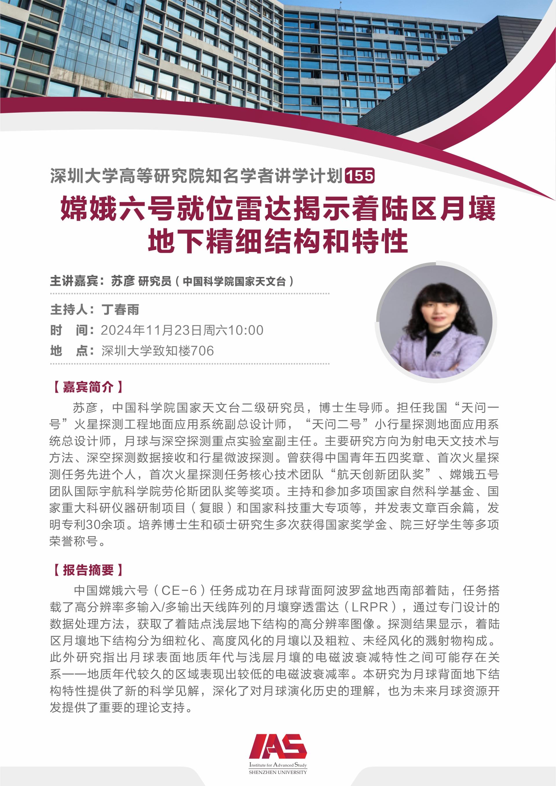 报告主题:嫦娥六号就位雷达揭示着陆区月壤地下精细结构和特性
