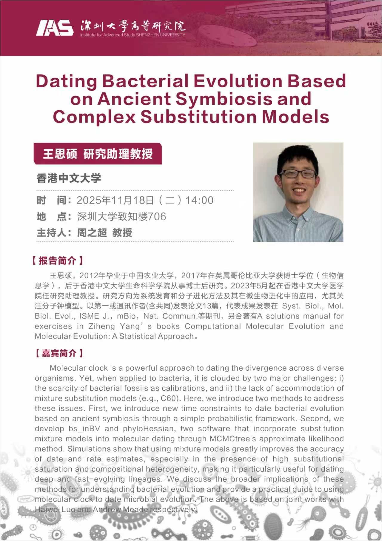 报告主题:Dating Bacterial Evolution Based on Ancient Symbiosis and Complex Substitution Models