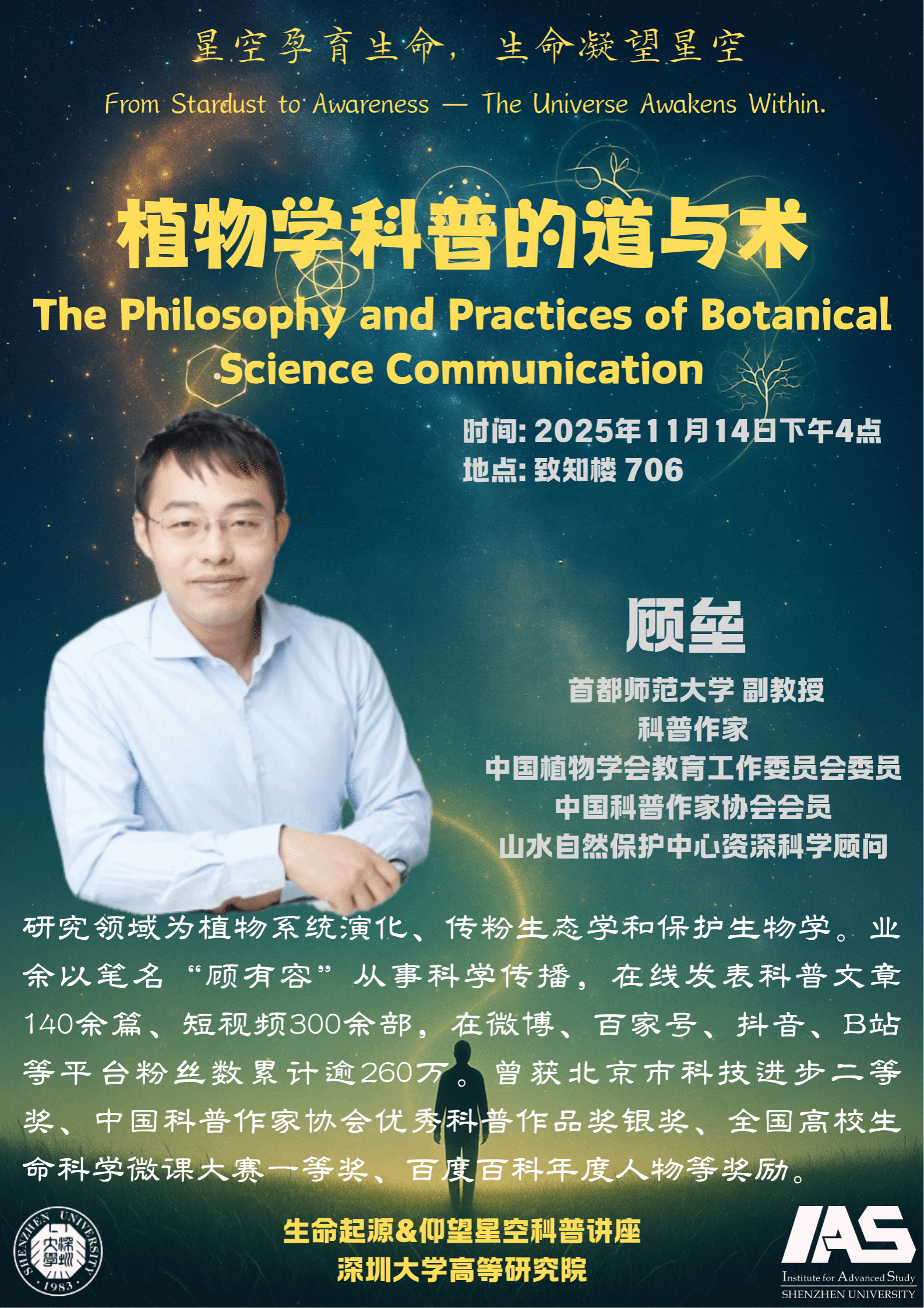 顾垒,首都师范大学副教授、科普作家。中国植物学会教育工作委员会委员、中国科普作家协会会员和山水自然保护中心资深科学顾问。研究领域为植物系统演化、传粉生态学和保护生物学。业余以笔名“顾有容”从事科学传播,在线发表科普文章140余篇、短视频300余部,在微博、百家号、抖音、B站等平台粉丝数累计逾260万。曾获北京市科技进步二等奖、中国科普作家协会优秀科普作品奖银奖、全国高校生命科学微课大赛一等奖、百度百科年度人物等奖励。