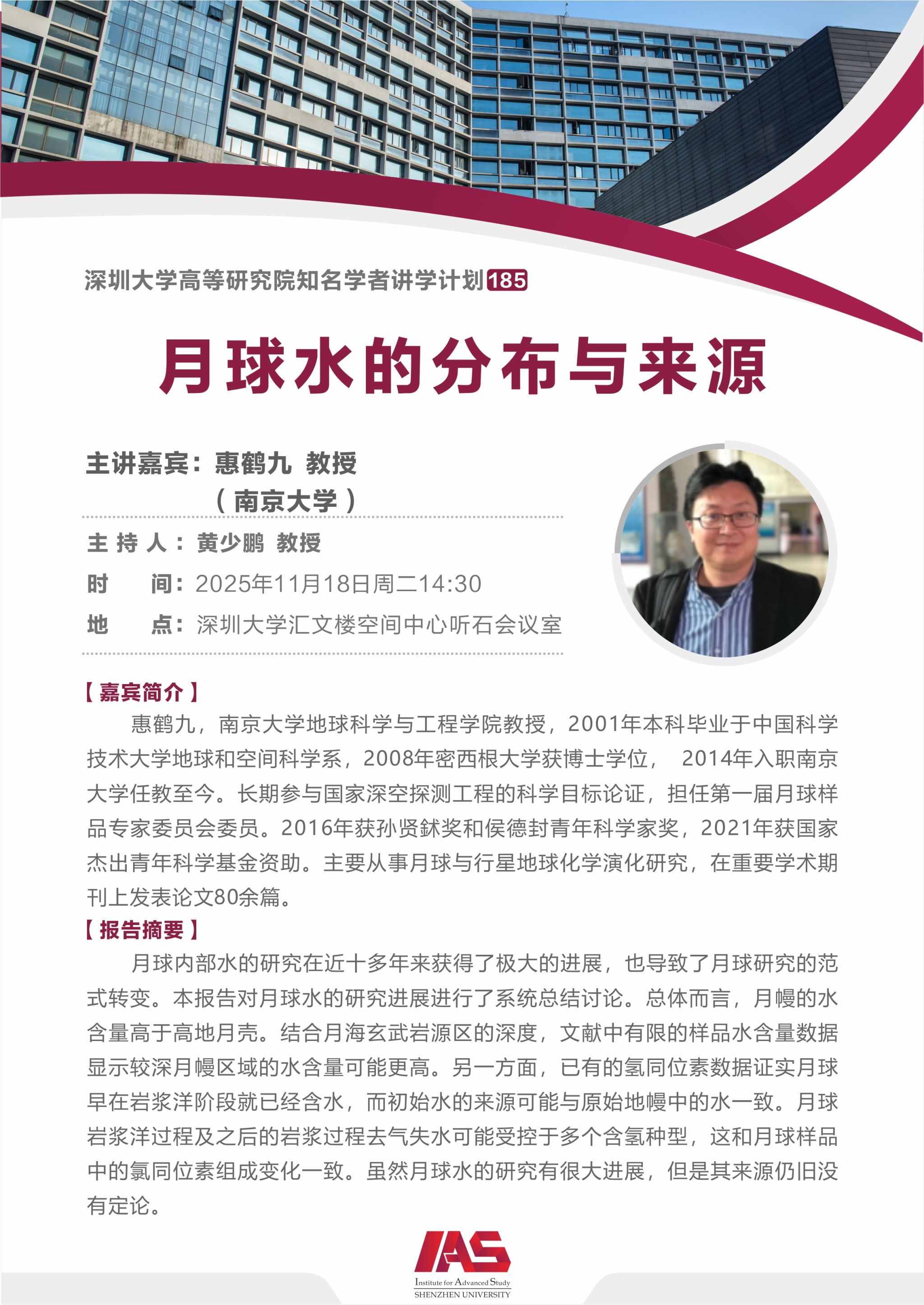 月球内部水的研究在近十多年来获得了极大的进展,也导致了月球研究的范式转变。本报告对月球水的研究进展进行了系统总结和讨论。总体而言,月幔的水含量高于高地月壳。结合月海玄武岩源区的深度,文献中有限的样品水含量数据显示较深月幔区域的水含量可能更高。另一方面,已有的氢同位素数据证实月球早在岩浆洋阶段就已经含水,而初始水的来源可能与原始地幔中的水一致。月球岩浆洋过程及之后的岩浆过程去气失水可能受控于多个含氢种型,这和月球样品中的氯同位素组成变化一致。虽然月球水的研究有很大进展,但是其来源仍旧没有定论。