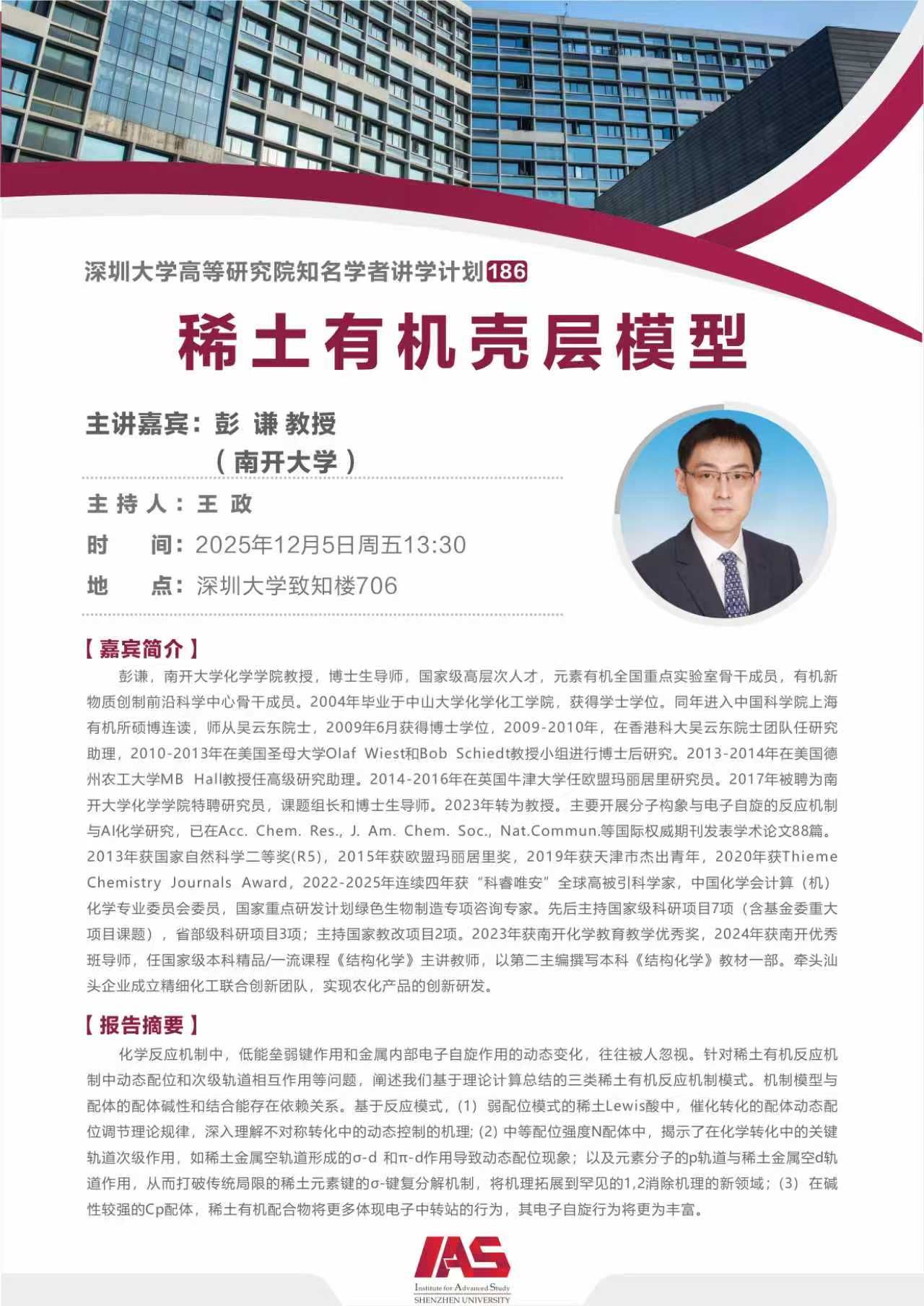 彭谦,南开大学化学学院教授,博士生导师,国家级高层次人才,元素有机全国重点实验室骨干成员,有机新物质创制前沿科学中心骨干成员。2004年毕业于中山大学化学化工学院,获得学士学位。同年进入中国科学院上海有机所硕博连读,师从吴云东院士,2009年6月获得博士学位,2009-2010年,在香港科大吴云东院士团队任研究助理,2010-2013年在美国圣母大学Olaf Wiest和Bob Schiedt教授小组进行博士后研究。2013-2014年在美国德州农工大学MB Hall教授任高级研究助理。2014-2016年在英国牛津大学任欧盟玛丽居里研究员。2017年被聘为南开大学化学学院特聘研究员,课题组长和博士生导师。2023年转为教授。主要开展分子构象与电子自旋的反应机制与AI化学研究,已在Acc. Chem. Res., J. Am. Chem. Soc., Nat.Commun.等国际权威期刊发表学术论文88篇。2013年获国家自然科学二等奖(R5),2015年获欧盟玛丽居里奖,2019年获天津市杰出青年,2020年获Thieme Chemistry Journals Award,2022-2025年连续四年获“科睿唯安”全球高被引科学家,中国化学会计算(机)化学专业委员会委员,国家重点研发计划绿色生物制造专项咨询专家。先后主持国家级科研项目7项(含基金委重大项目课题),省部级科研项目3项;主持国家教改项目2项。2023年获南开化学教育教学优秀奖,2024年获南开优秀班导师,任国家级本科精品/一流课程《结构化学》主讲教师,以第二主编撰写本科《结构化学》教材一部。牵头汕头企业成立精细化工联合创新团队,实现农化产品的创新研发。