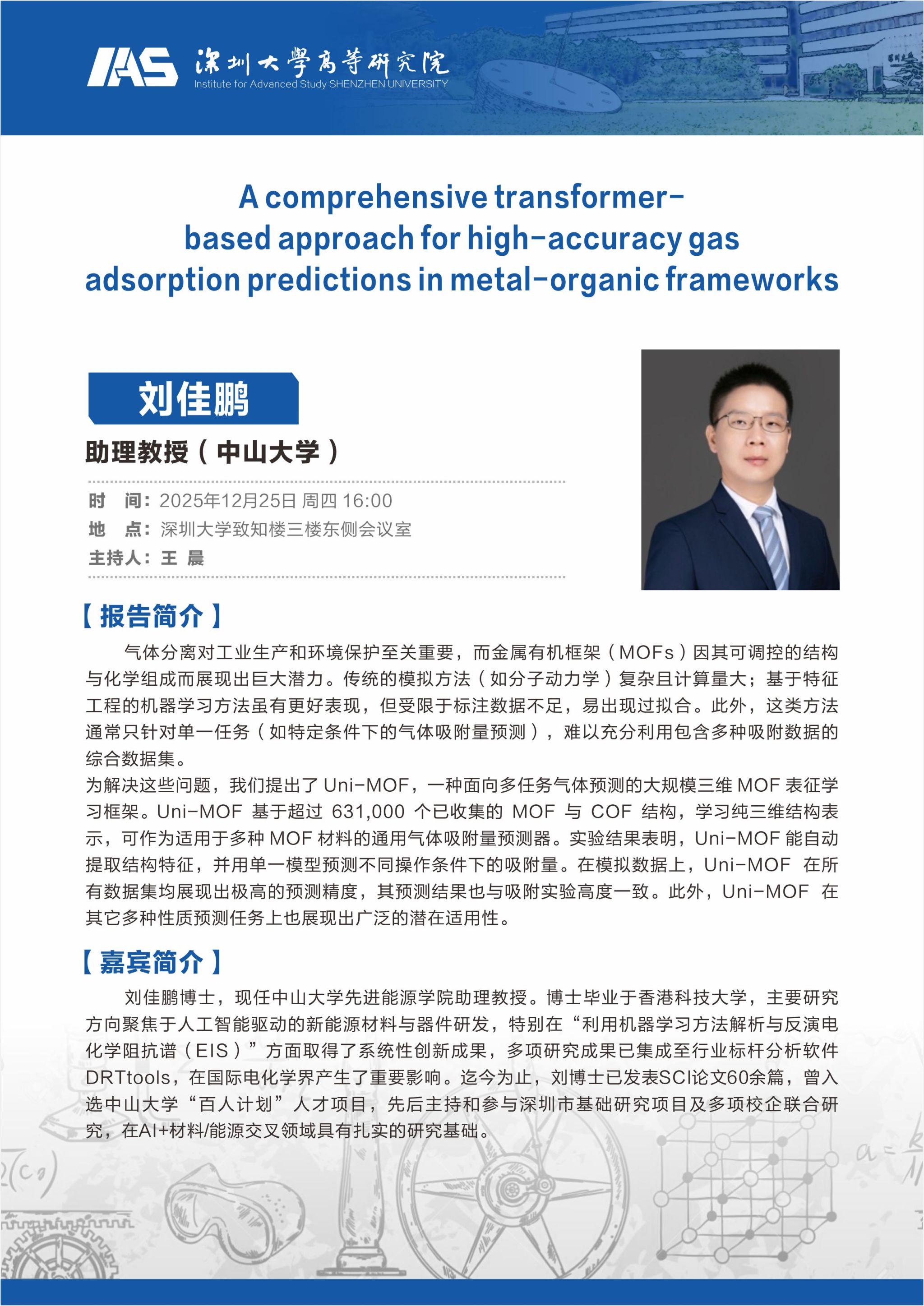 报告主题:A comprehensive transformer-based approach for high-accuracy gas adsorption predictions in metal-organic frameworks