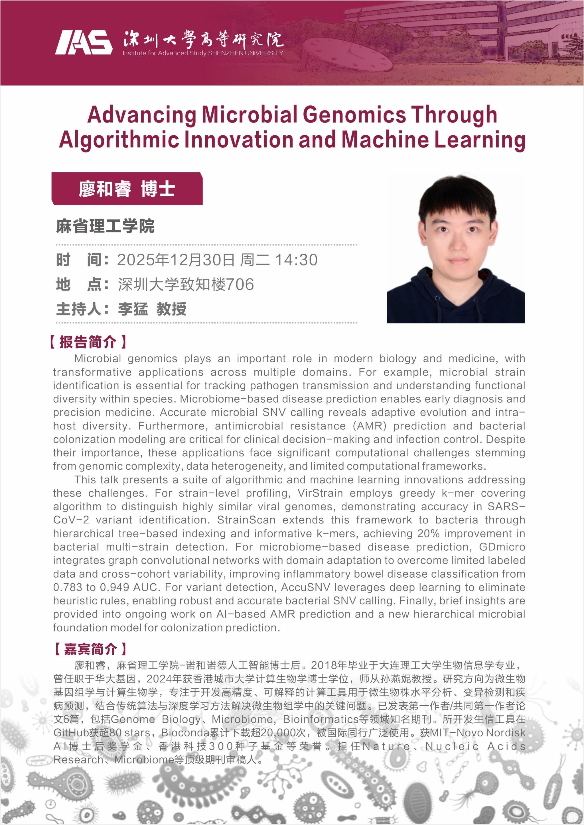报告主题:Advancing Microbial Genomics Through Algorithmic Innovation and Machine Learning