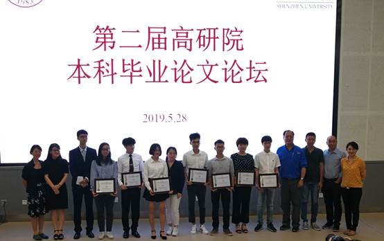 一个多小时的学术视听盛宴之后,罗教授和参会的指导老师们为7位同学颁发了“本科毕业论文论坛奖”证书,并亲切地合影留念。