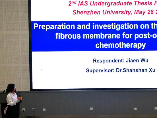 经过各专业组教授们讨论推荐,本届本科毕业论文论坛共有7 名毕业生进行毕业论文展示。分别是徐韧哲同学的Construction ofTrend Tracking Trading System Based on Volatility Filter and Maximum EntropySpectral Analysis,徐欣楠同学的Synthesis of Colloidal PatchyRods,张仕锐同学的Artificial synapse emulated by chargetrapping-based resistive switching device,邹海林同学的ControllableSelf-assembly of rod-shaped magnetic holes,伍家恩同学的Preparationand investigation on the drug-loaded fibrous membrane for post-operativechemotherapy,钟毅贤同学的The adsorption of cadmium andmercury in microalgae,以及温婕琪同学的Affects of high-fat andhigh-cholesterol diet on the heterogeneity of arterial endothelial cell andgene-target therapy。该7名同学用流利的英文做了精彩的论文汇报,赢得了台下热烈的掌声。