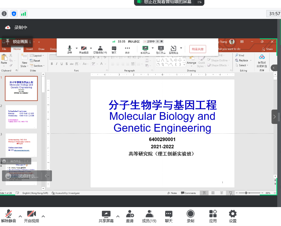 曾绍雄老师--《分子生物学与基因工程》(2020级)