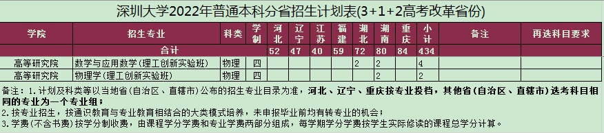 考生获得高考分数之后,可自主申请我院的预面试选拔,学院将根据各省高考情况确定参加预面试的考生名单。通过预面试选拔的考生,2022年被深圳大学录取后,即可直接入读2022级“理工创新实验班”。考生亦可加入招生咨询QQ群(1080110426)或电话咨询高等研究院招生工作小组预面试方案。