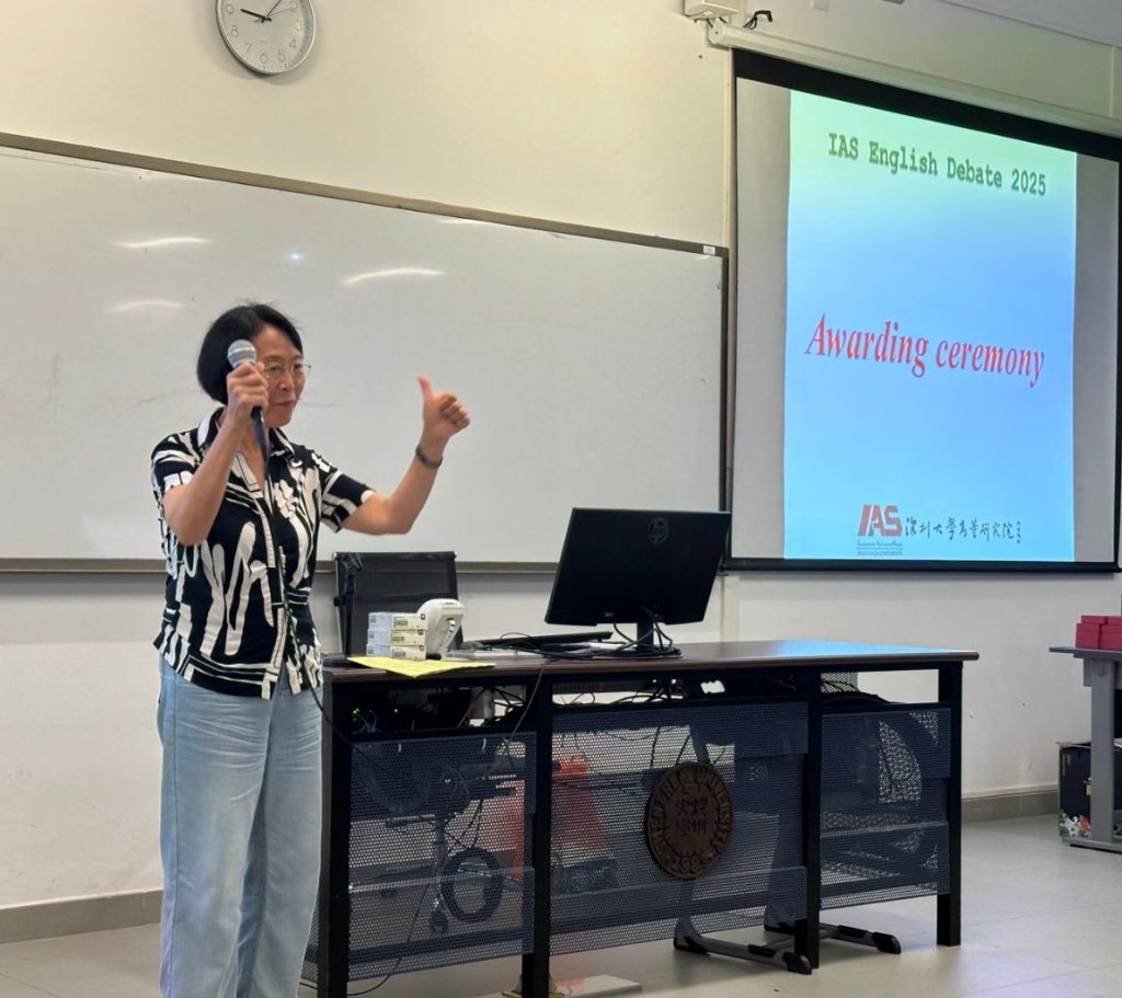 黄月圆教授对同学们能够自信完成英语辩论赛表达了充分的赞赏和肯定,大家展示出勇于质疑、理性思考的精神以及出色的思辨能力,期待大家能在今后持续进步。她说英语辩论赛举办至今已经第十届,它已成为学院的一项传统品牌赛事,呈现的不仅是语言与思辨的精彩交锋,更彰显了同学们在英语素养方面的优秀水平。英语教学团队坚持通过英语课程改革,倡导本科生用国际通用语言进行科学研究训练,培养学生科学思维、学术规范和科研创新能力。