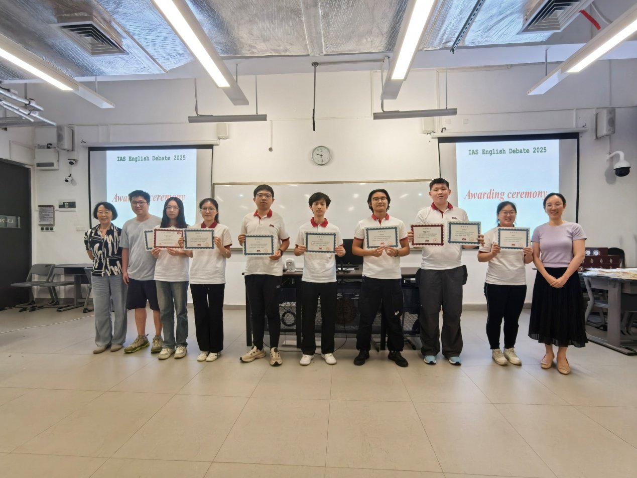 评委老师为获奖队伍和获奖学生颁发证书并合影留念。至此,辩论赛圆满落下帷幕。