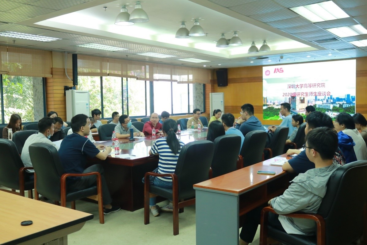 2020年11月5日中午,高等研究院在汇典楼二楼会议室举办了2020级研究生师生座谈会。高等研究院副院长李猛教授、高永祥研究员、周晔研究员、潘科研究员、熊海研究员、李武研究员、吴成发研究员和研究生秘书范雨婷老师以及辅导员陈海亮老师出席本次座谈会,2020级硕士研究生参加了会议。