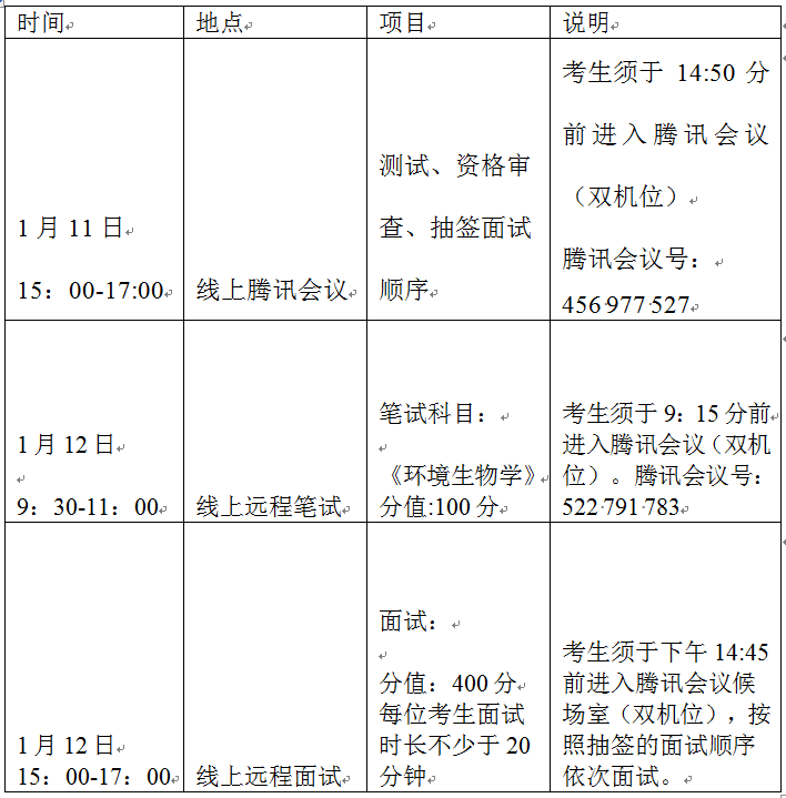 1、考生于1月11日下午14:50分进入腾讯会议报到,将身份证、毕业证学位证等准备好,听从工作人员安排完成资格审查、机位测试、面试顺序抽签等流程。