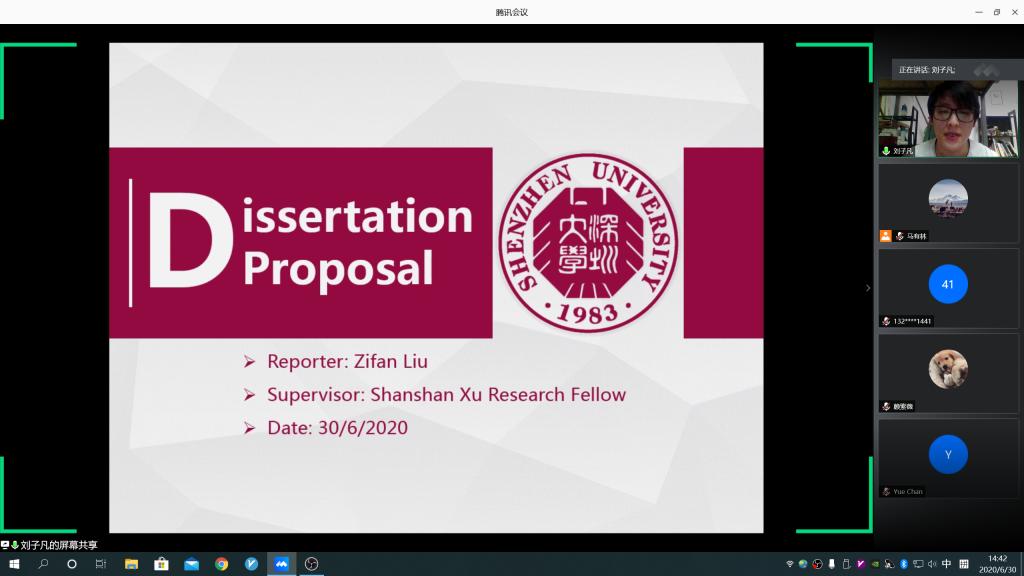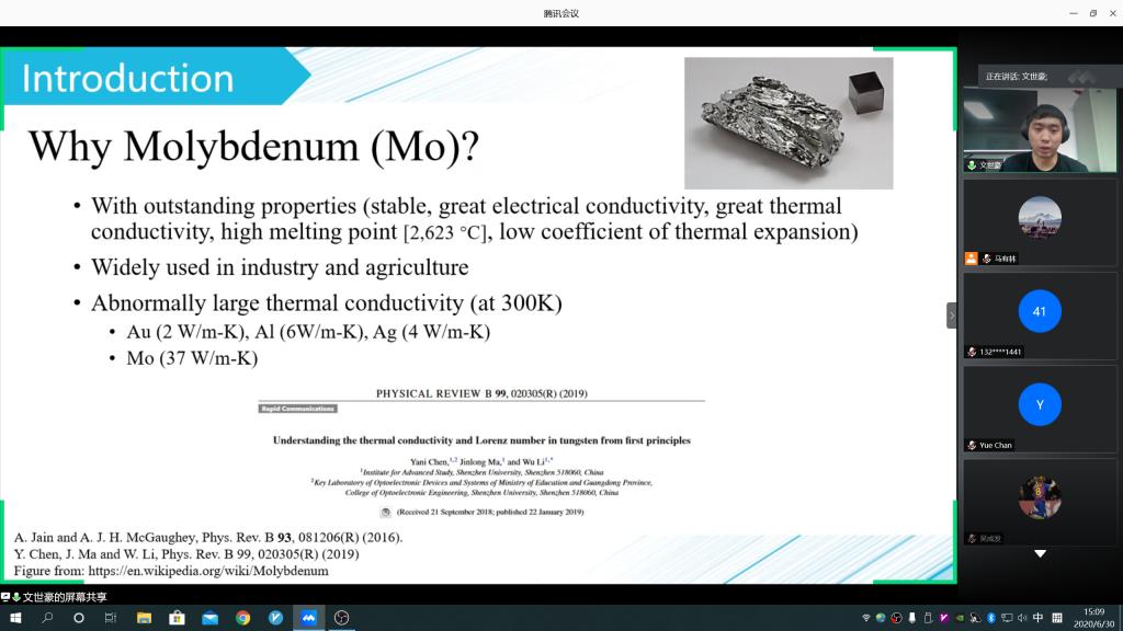 6月30日上午9:30到下午16:30,高等研究院通过腾讯会议的形式召开了2018级硕士研究生毕业论文开题报告答辩会。来自材料科学与工程、复杂系统与数据科学两个专业的18位学生参与了本次答辩。高等研究院副院长李猛教授莅临指导,专职教师陈誉、陈友根、曹艳、李昇隆、李武、李晓光、许杉杉、熊海、吴成发、周晔等作为答辩评委和指导老师全程参会。