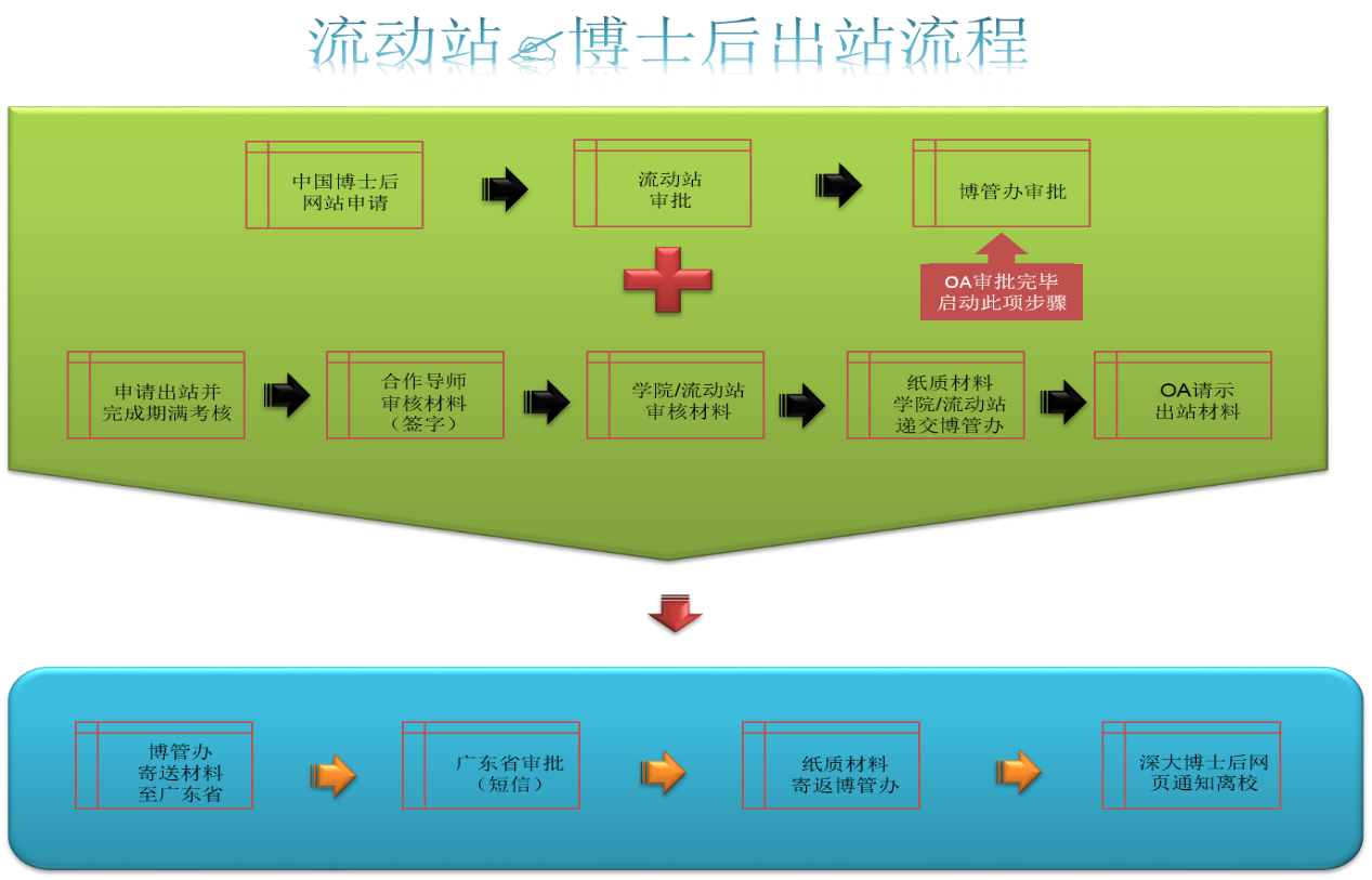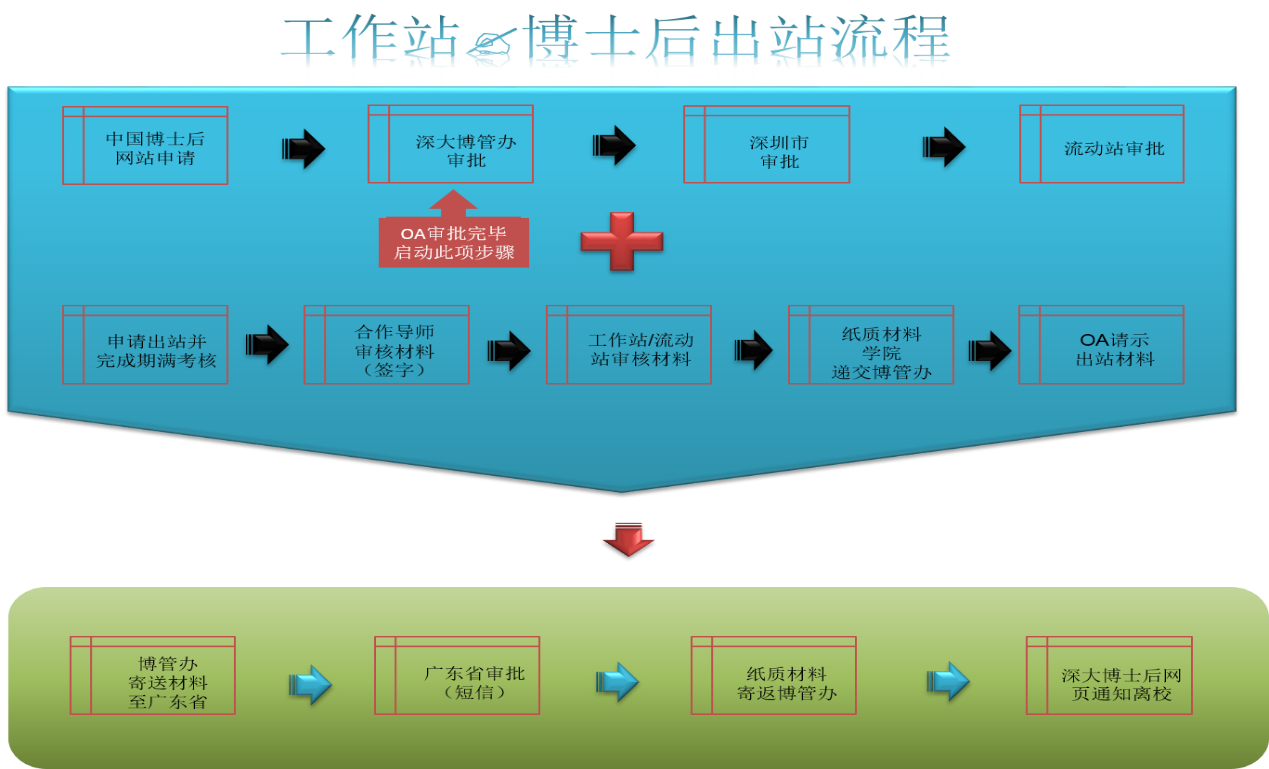 1.由流动站或学院向博管办提交申报材料,再由博管办将学校批准出站的申请人材料向广东省人社厅报批。